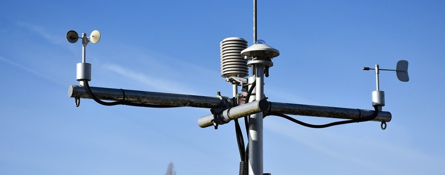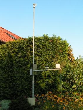 Windmesser in 4,50 m, Regensensor in 1,50m, Thermometer-Hygrometer-Außensender in 1,50 m Thermometer-Hygrometer-Außensender, Regensensor, Sensor Globalstrahlung