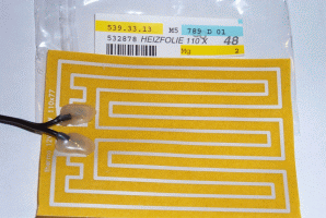 Hier handelt es sich um eine alternative Heizfolie von Fa. Conrad Best.Nr. 532878 Preis 5,60 € Daten: 110x77 mm, 12 Volt, 12 Watt Anbringung Heizfolien Die Heizfolien haben eine Klebeschicht, mit der sie im inneren des Regensensors aufgeklebt werden. Wichtig dabei ist, dass die Anschlussdrähte die Regenwippe nicht behindern. Der Temperaturschalter ist z. Zt. auf ca. +1,3 °C und kleinste Temperaturdifferenz eingestellt. Beide Heizfolien werden zur Zeit mit einer Spannung von 7,4 V betrieben.